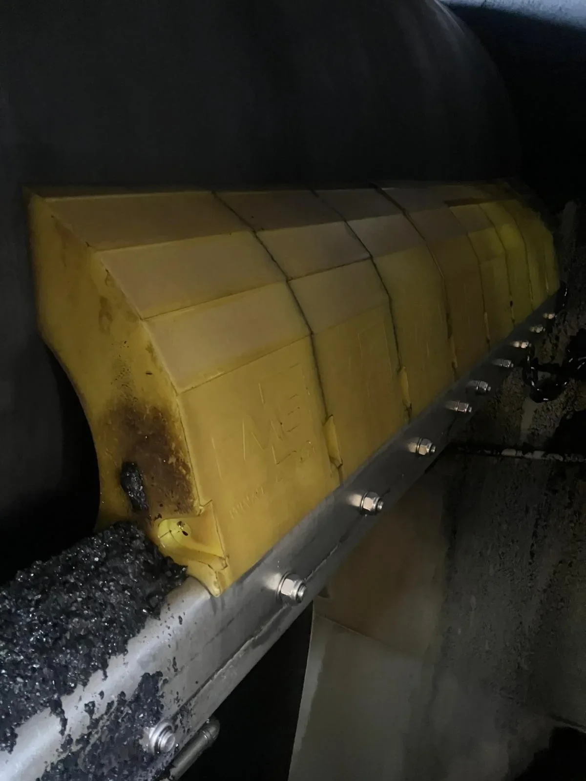 Installed on July 2025, the FM8 Super XHD blades feature a design optimised for high-speed applications. The distinctive yellow formulation represents FM8's advanced polyurethane compound, engineered specifically for the unique challenges of Australian coal handling.