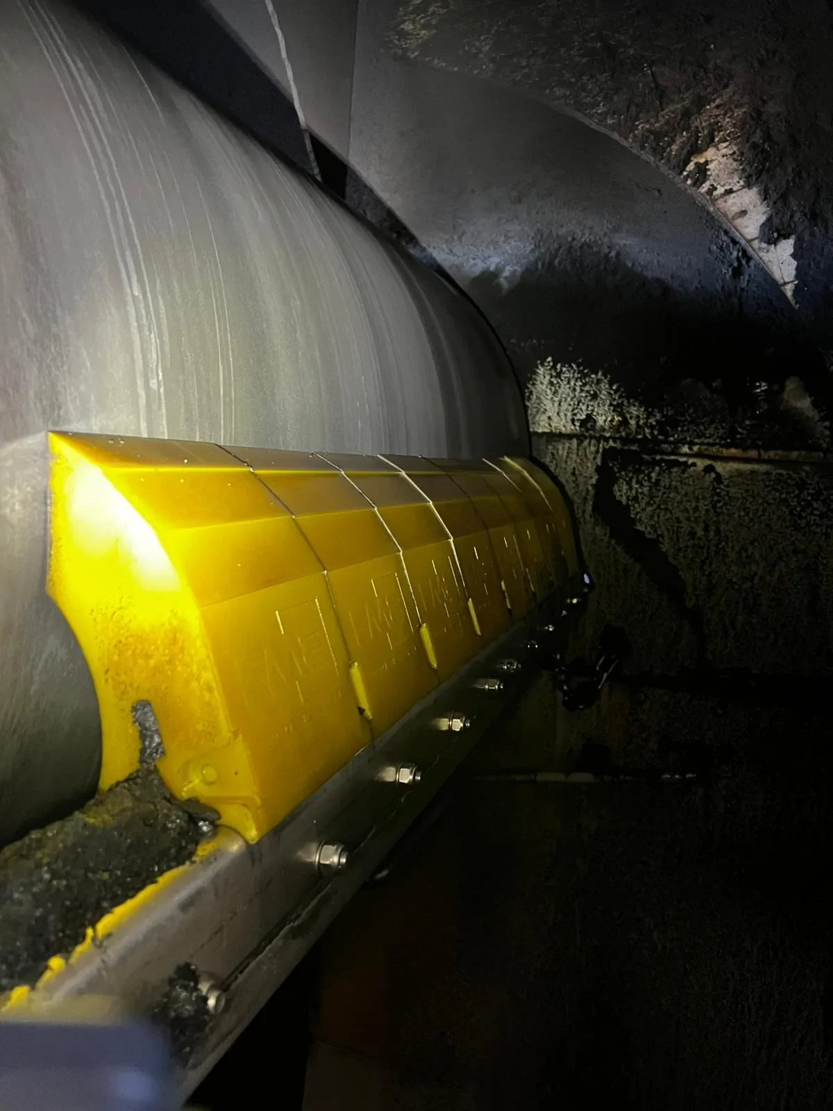 2. Consistent Cleaning Efficiency FM8’s design maintains optimal blade-to-belt contact throughout the wear life. Unlike competitor blades that often suffer from uneven wear or profile distortion, the FM8 design shows uniform blade wear—ensuring consistent carryback control from day one to replacement day.